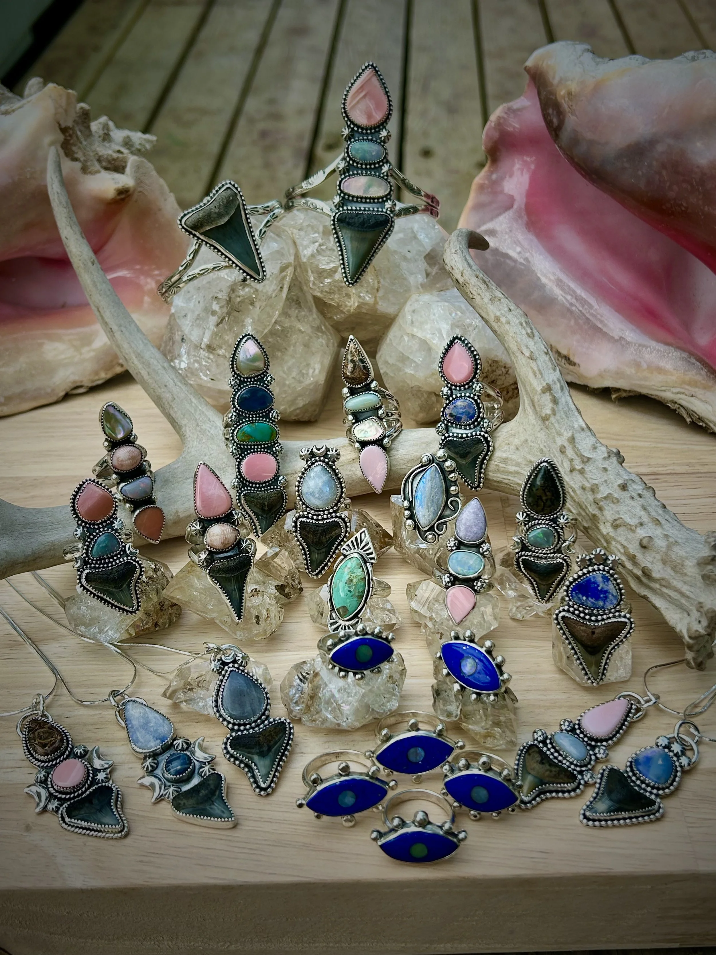 Incorporating many different styles including; modern, bohemian, southwestern and more and drawing inspiration from her travels and life, designer Carly Cappelluzzo hand-makes bespoke jewelry featuring hand-cut gemstones, and ceramic goods in her home studio. Kai Indie Jewelry began on the North Shore of Oahu back in 2015, grew when Carly moved to Jacksonville, Florida, evolved along a cross country journey in a converted school bus and since then has metamorphosed into Kai Indie Studios now located in Sebastian, Florida.