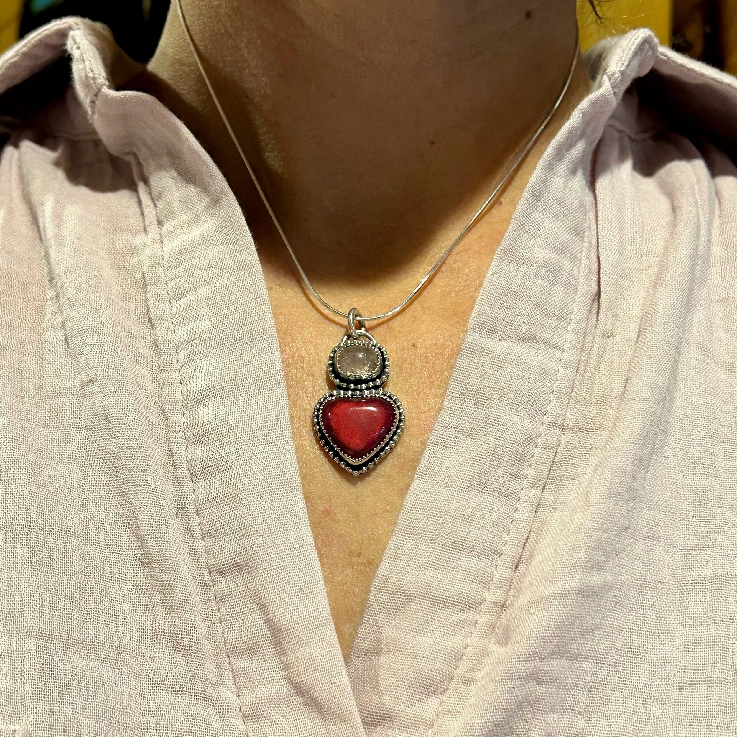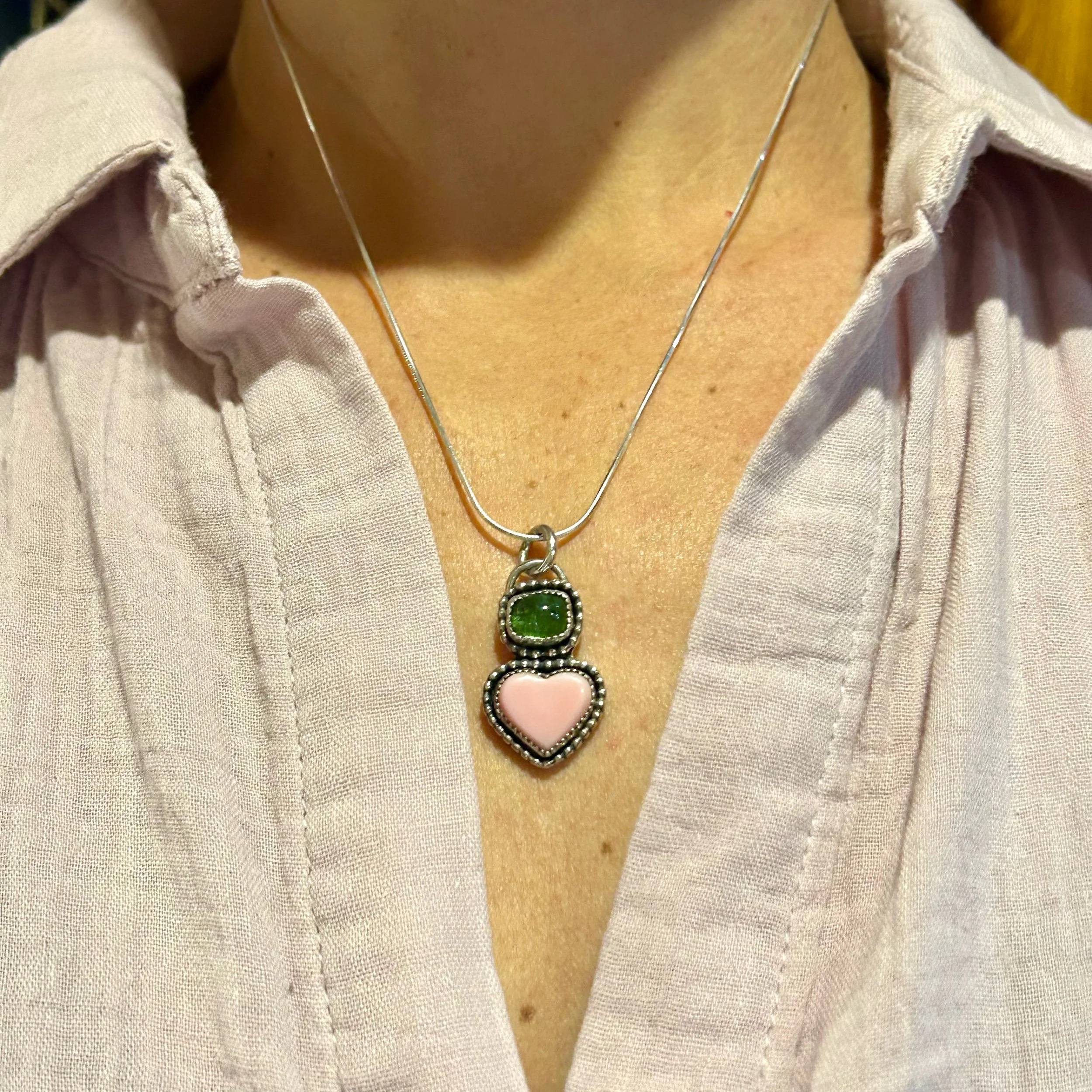 Shop Categories: All Crystals Ceramic Goods Leaves 420 Ceramics Tiny Alters Trinket Dishes Pitchers Mugs Incense Burners Jewelry Dishes Vases Planters Jewelry Bangles Cuffs Rings Necklaces Earrings All | Crystals | Ceramic Goods | Jewelry | Conch Heart and Green Tourmaline Necklace $165.00 Red Heart and Pink Tourmaline Necklace $160.00 Red Heart Necklace $130.00 Turquoise Heart Cuff Medium-Large $300.00 Magnificent 22 Gemstone Inlay Cuff $777.00