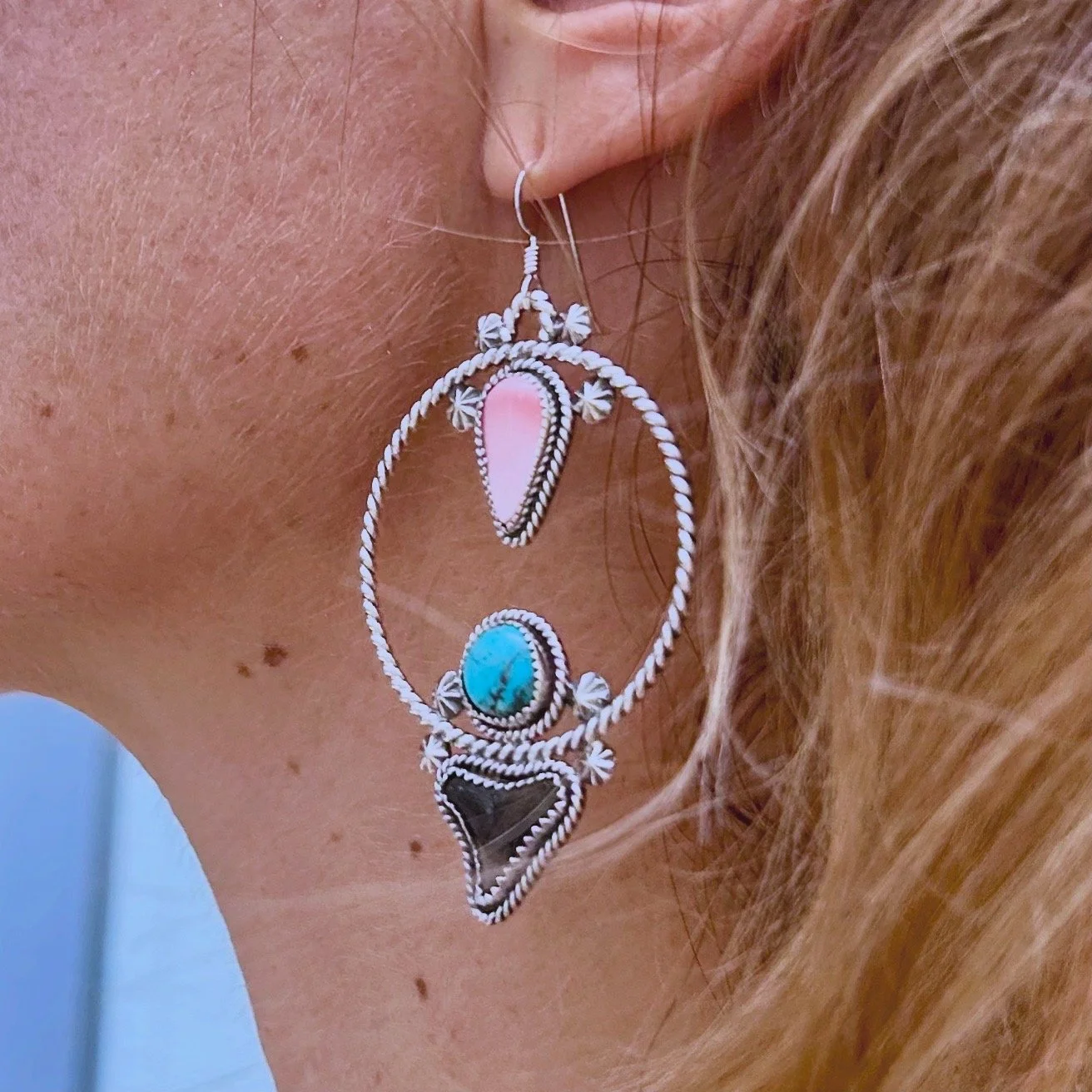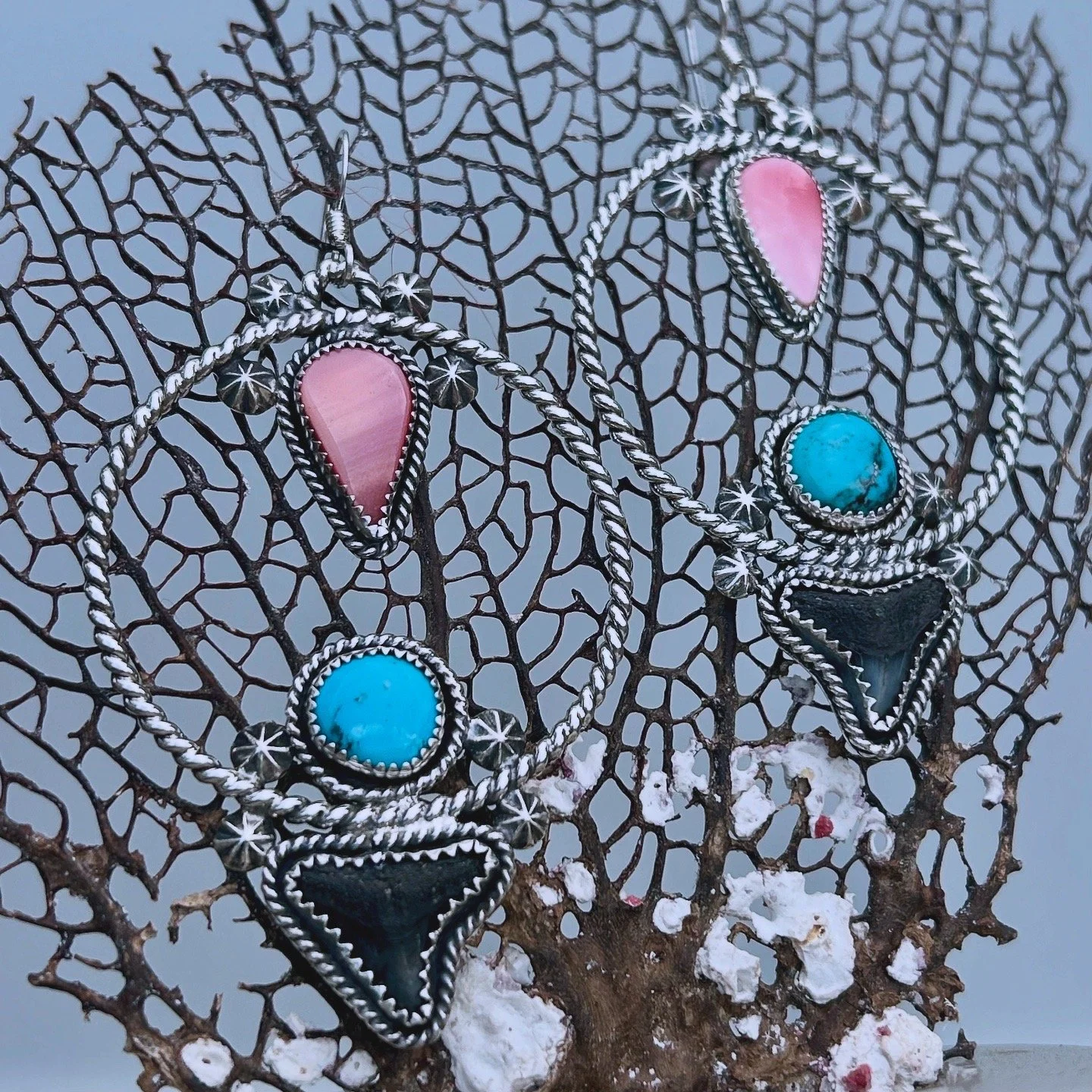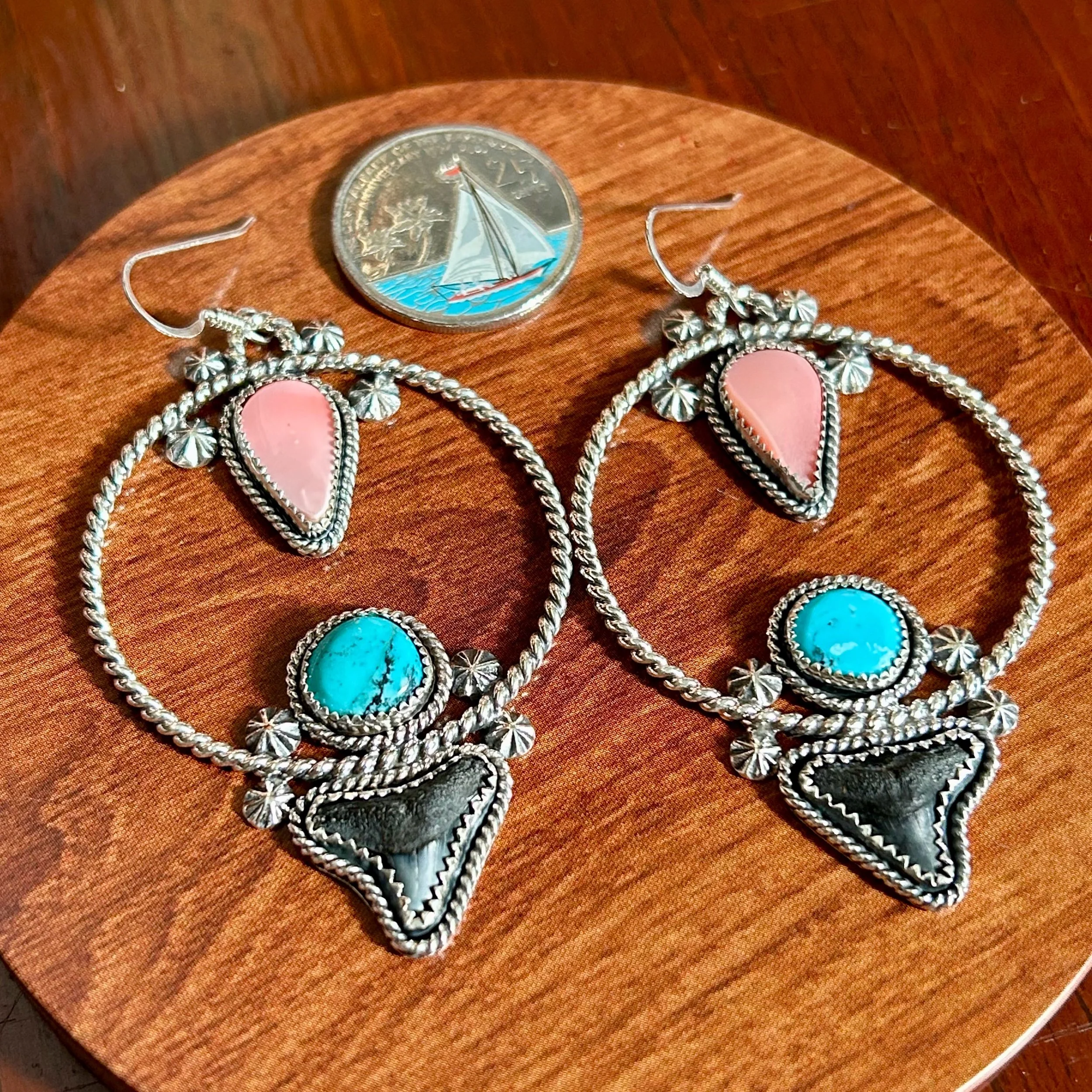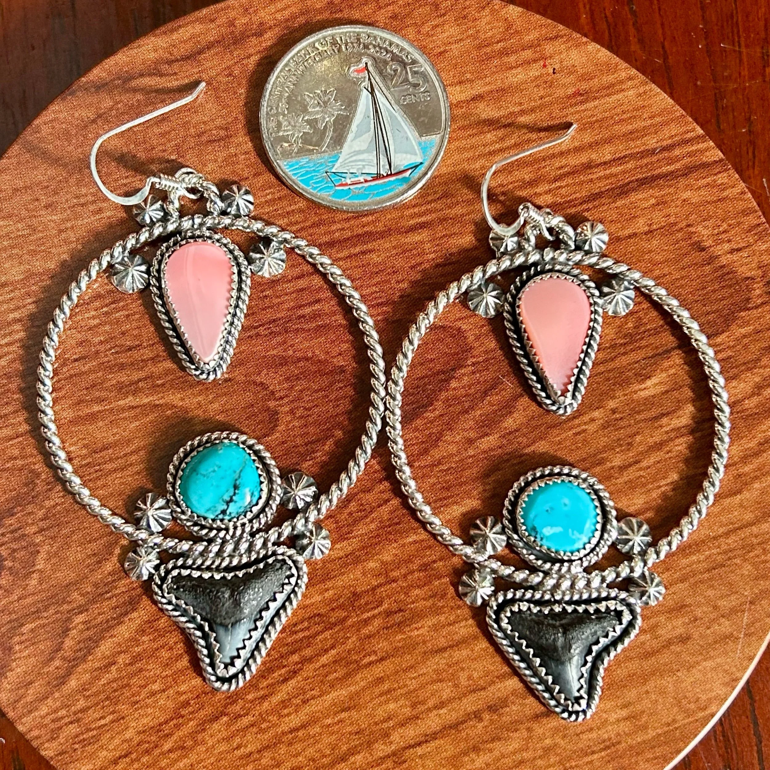 These gorgeous earrings are entirely handcrafted out of sterling silver. They feature handcut Bahamian Conch Shell and Bahamian Cowrie Shells. The hang from sterling silver ear hooks. The first photo shows their relative size compared to a Bahamian Quarter which is roughly the same size as a US Quarter.